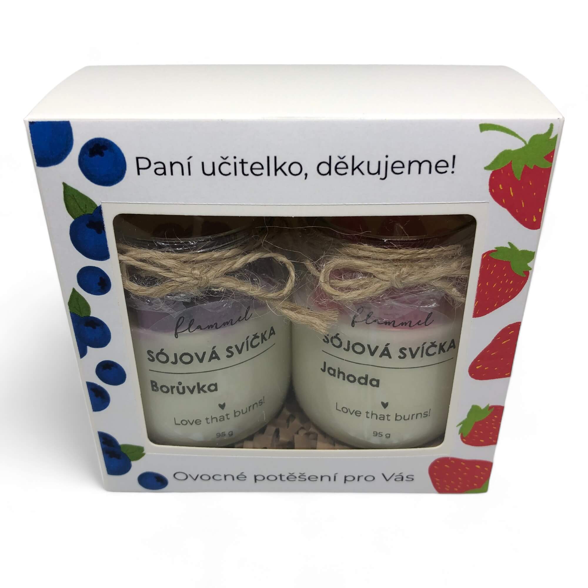 Dárkové balení pro paní učitelku ke konci školního roku, který se kvapem blíží. Udělejte radost své oblíbené paní učitelce s našimi ovocnými svíčkovými „zavařeninami“ flammel.