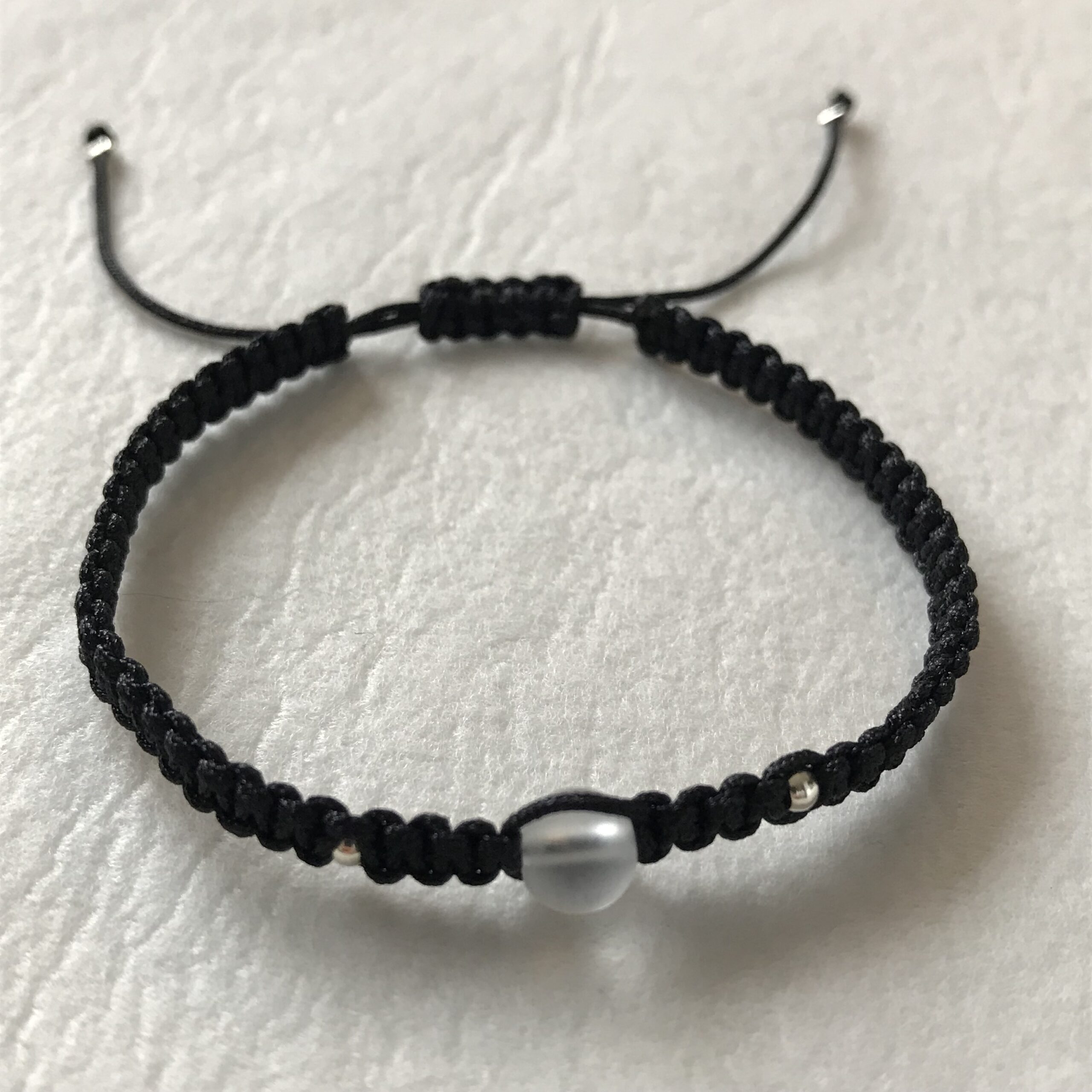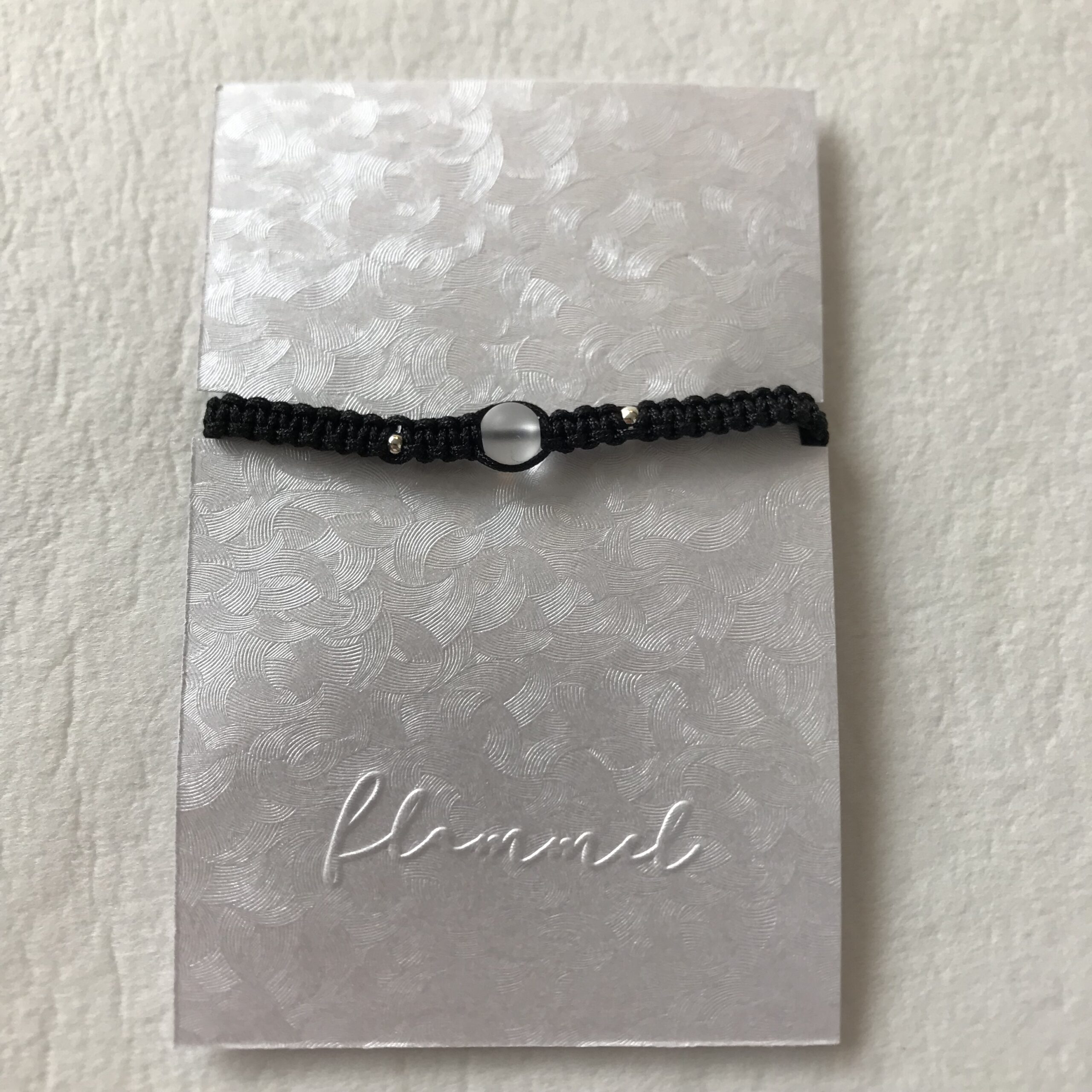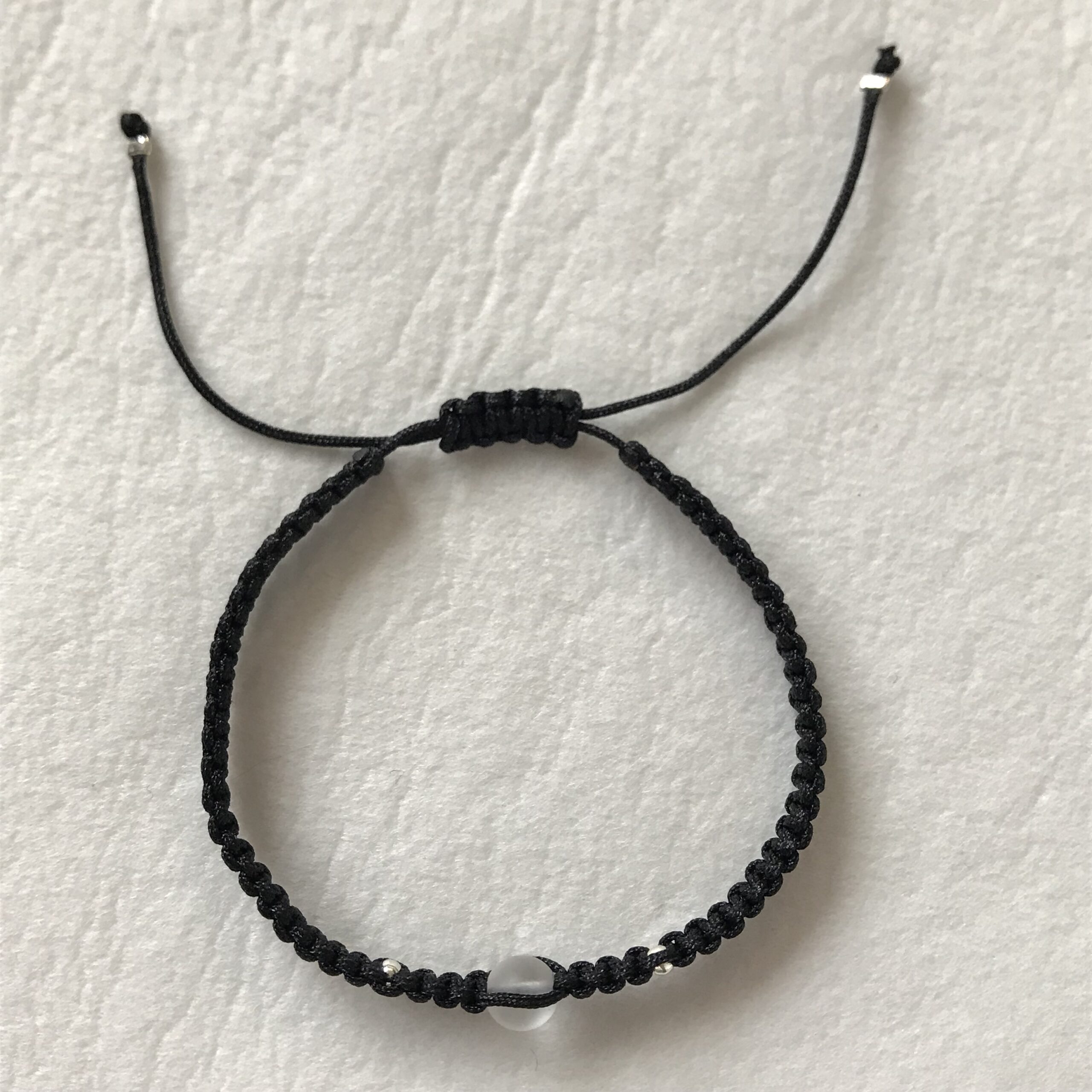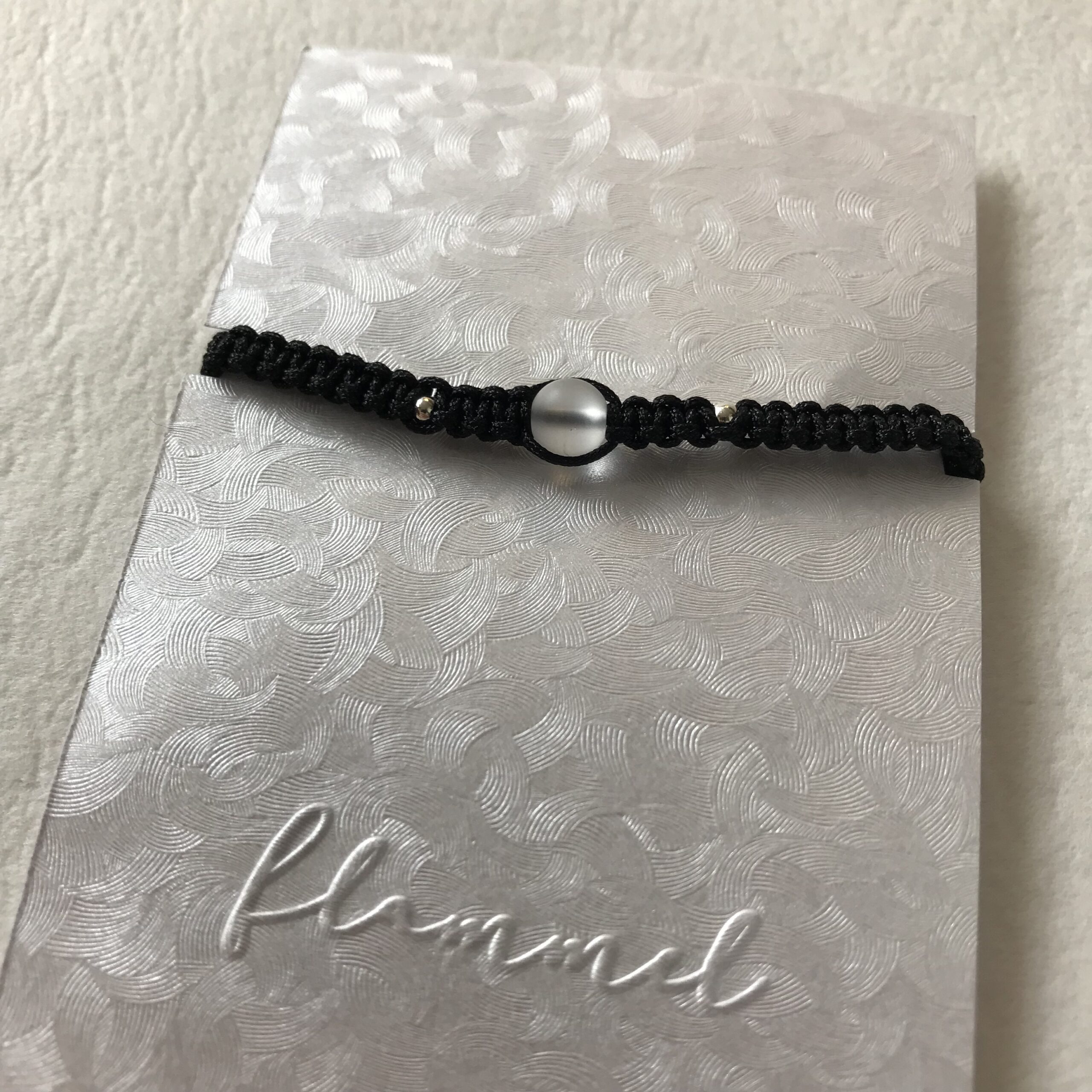 Černý macramé náramek flammel s křišťálem, minerálním kamenem čistoty a rovnováhy. Pohyblivý macramé uzel zaručuje univerzální velikost náramku.