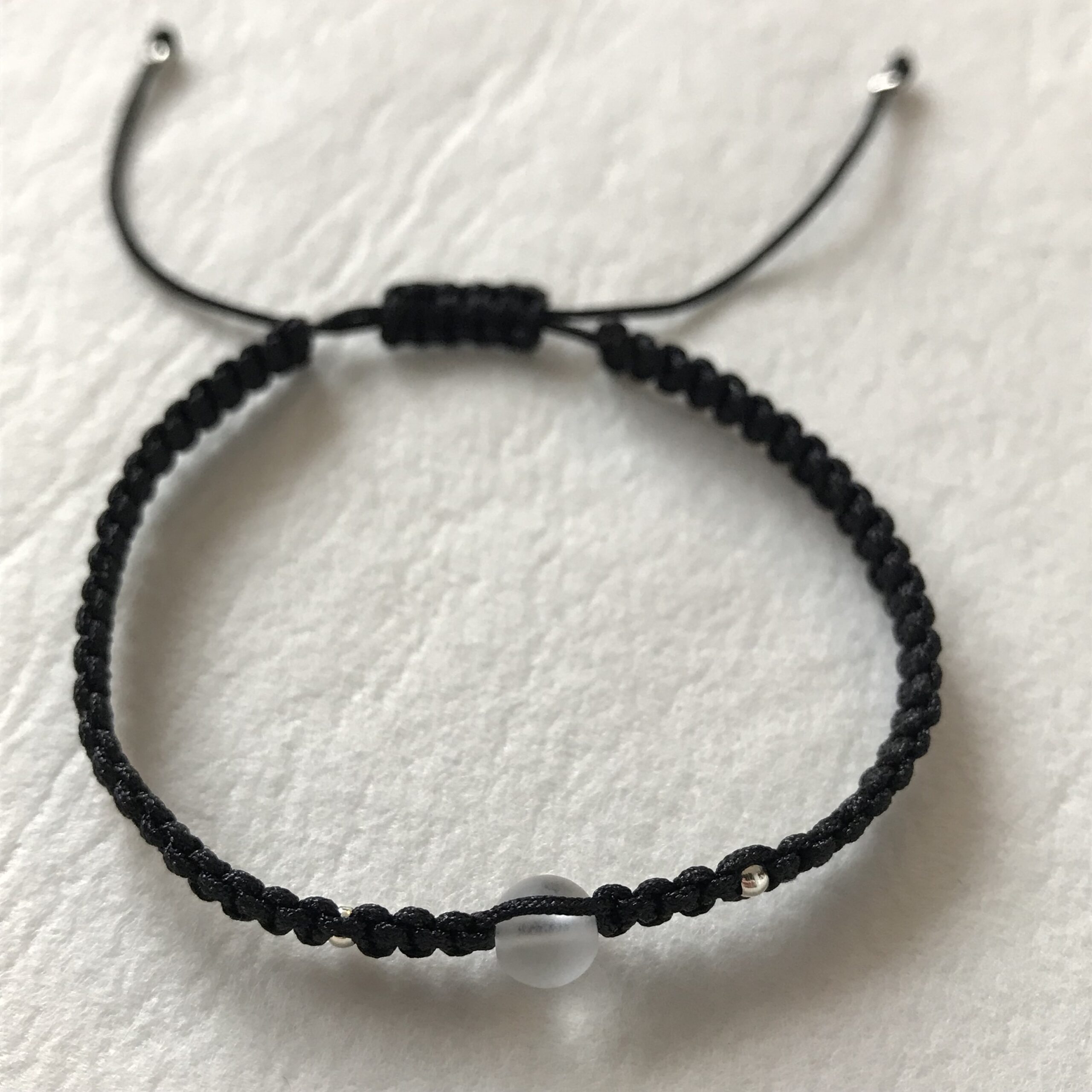 Macramé náramek s matným minerálním kamenem křišťál o vel. 6 mm a se stříbrnými bižuterními komponenty. Ručně a s láskou vyrábím.