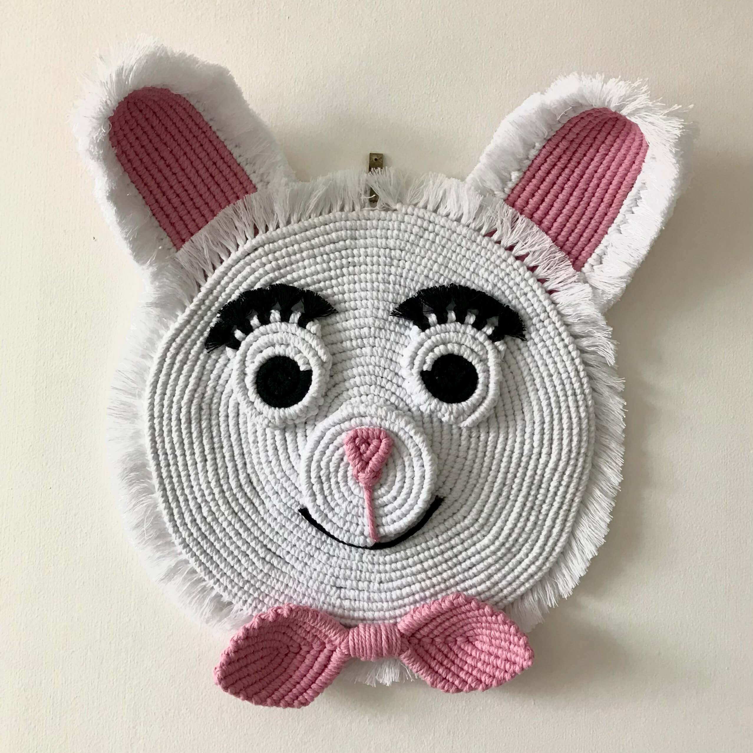 Macramé zajíce jsme vytvořily na základě naší vlastní představivosti. Jako inspiraci nám posloužily animované filmy pro děti. Věříme, že tento macramé zajíc je jedinečný, originální a potěší nejednu slečnu v dětském pokojíčku.