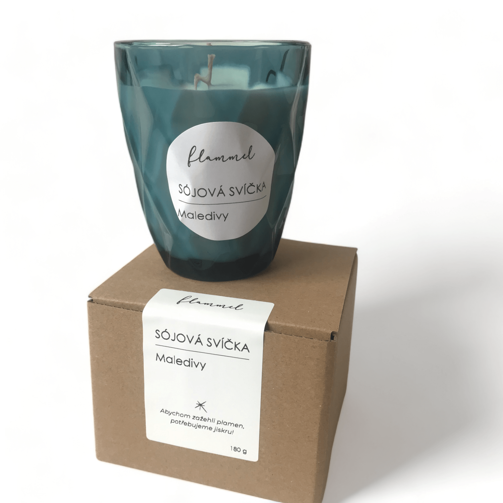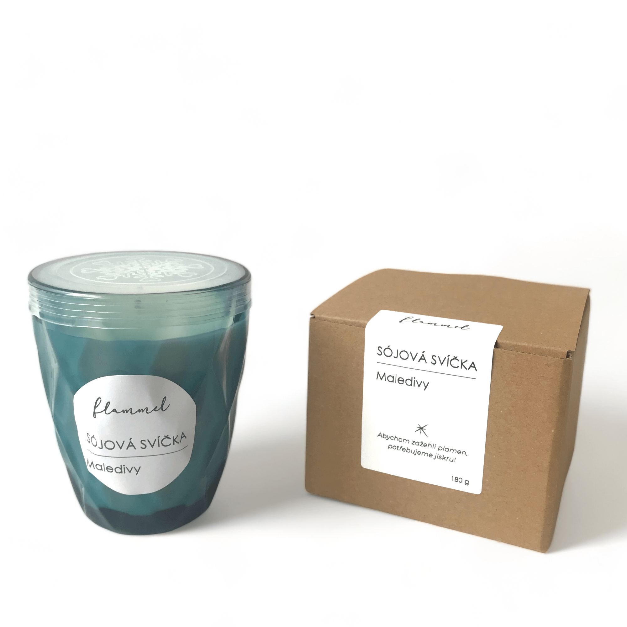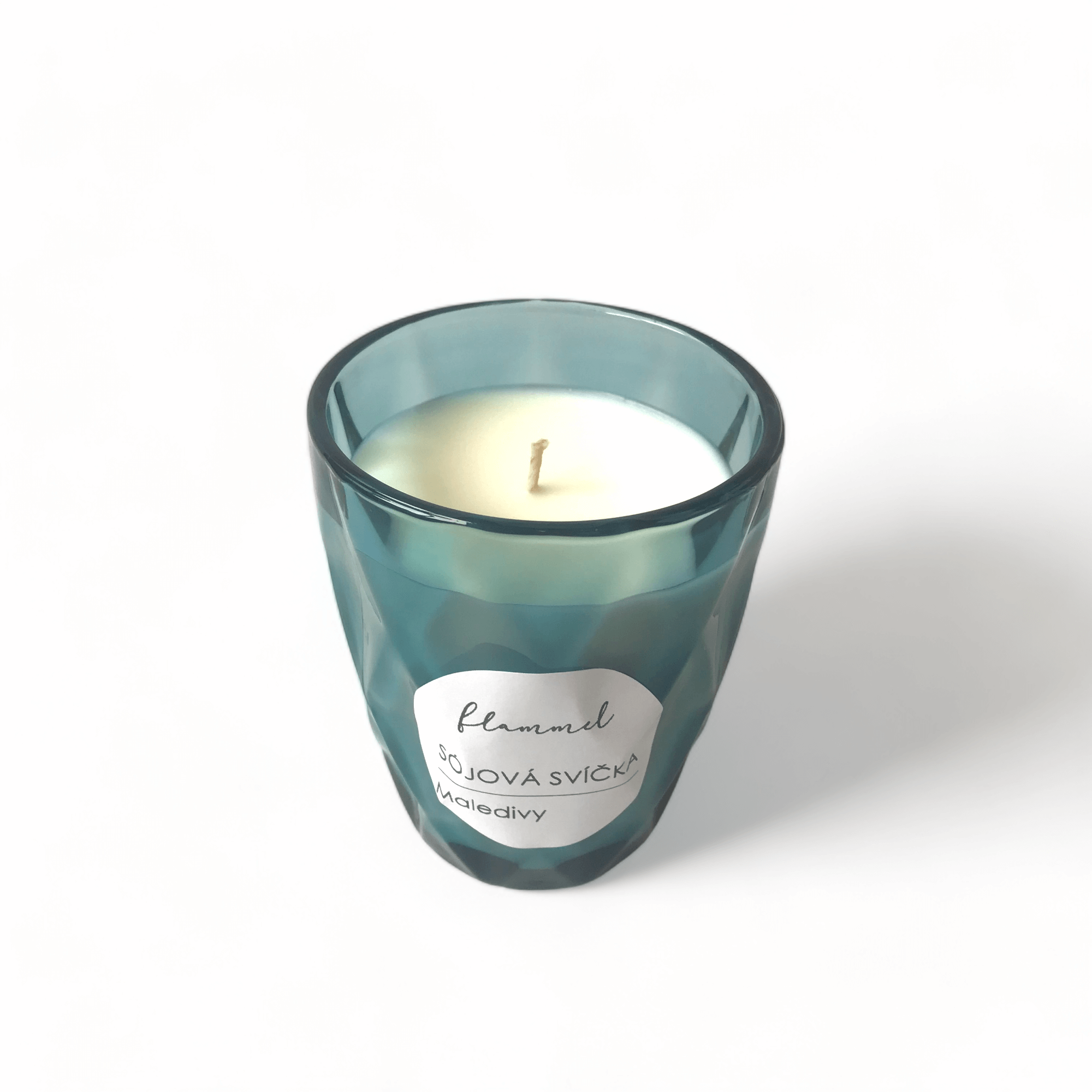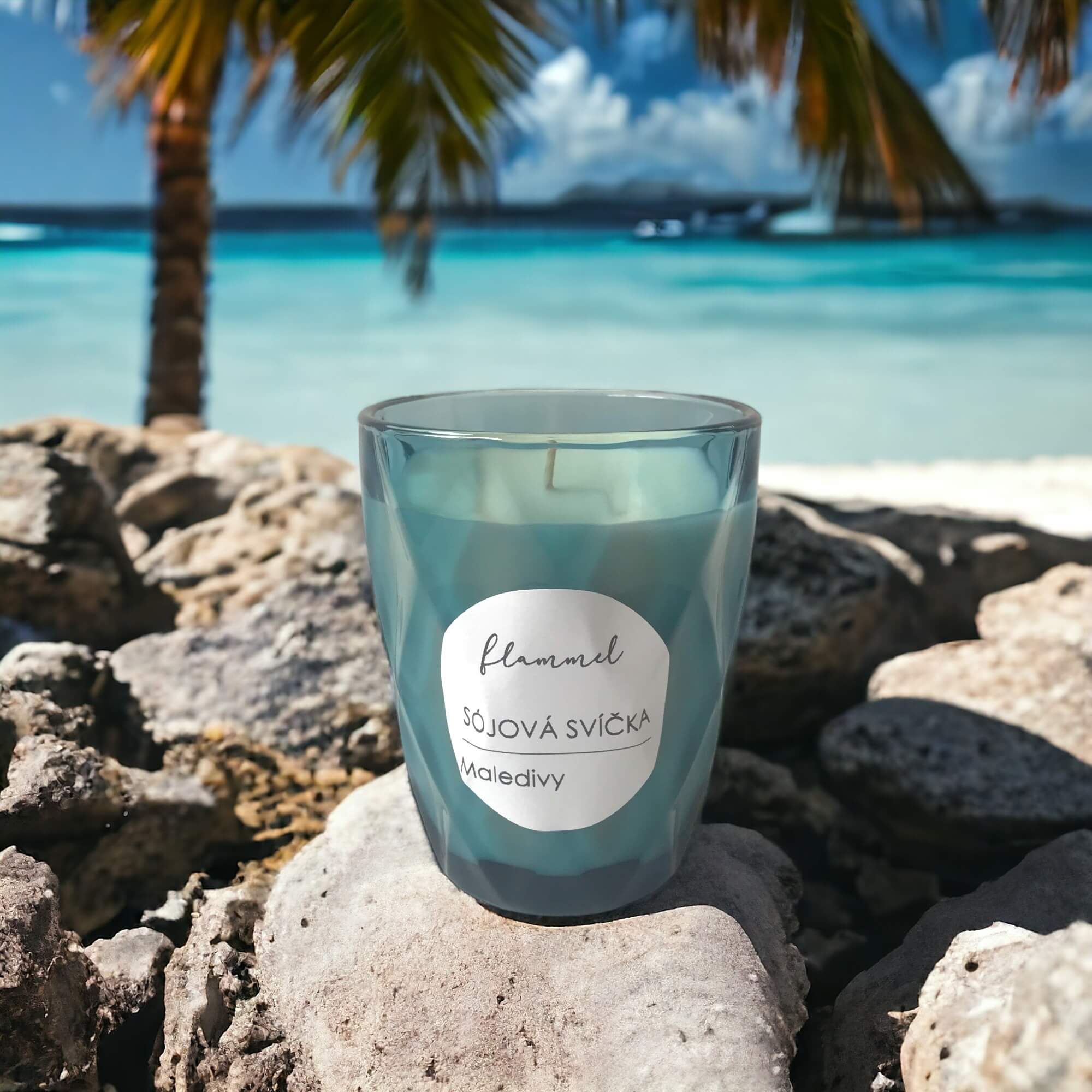 Sójová svíčka flammel Maledivy s příjemnou vůní ve stylu vodních parfémů! Svěží, lehká, letní. A pozor, unisex! Takže svíčka svou vůní ohromí nejen ženy, ale i muže. Vůně Vás přenese na sluncem rozpálený bílý písek, omývaný vlnami azurového oceánu.