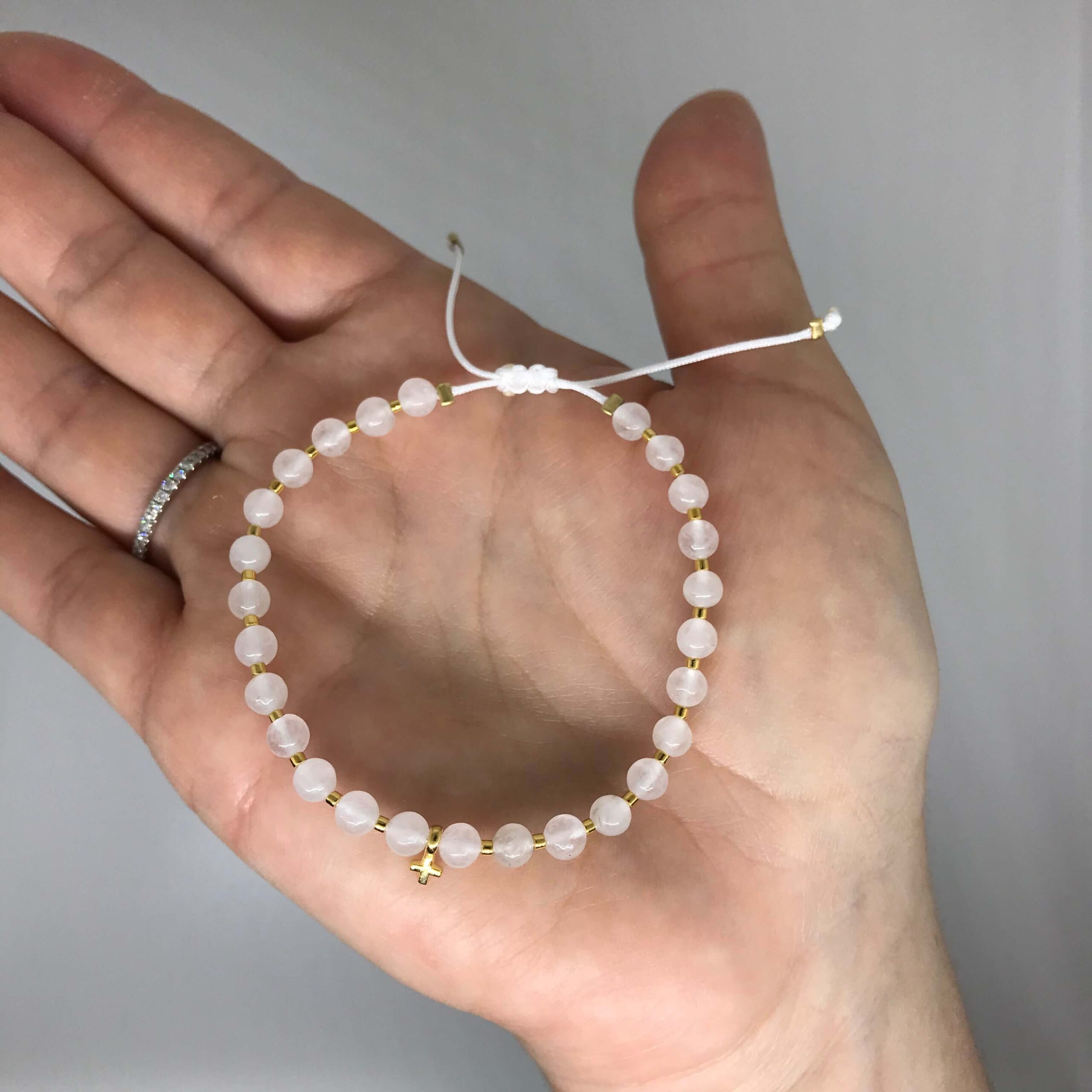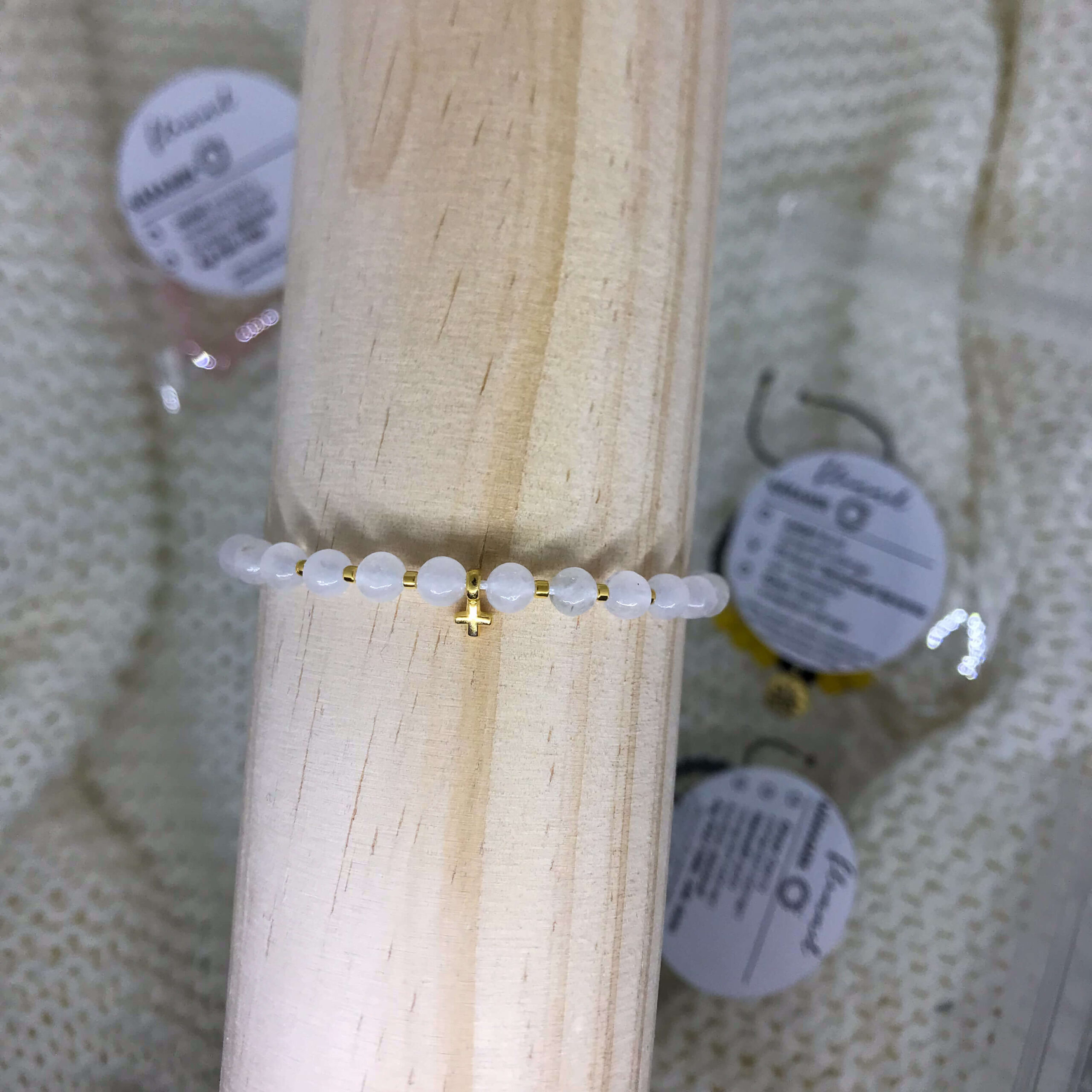 Náramek „křížek“ s minerálním kamenem křemen sněžný