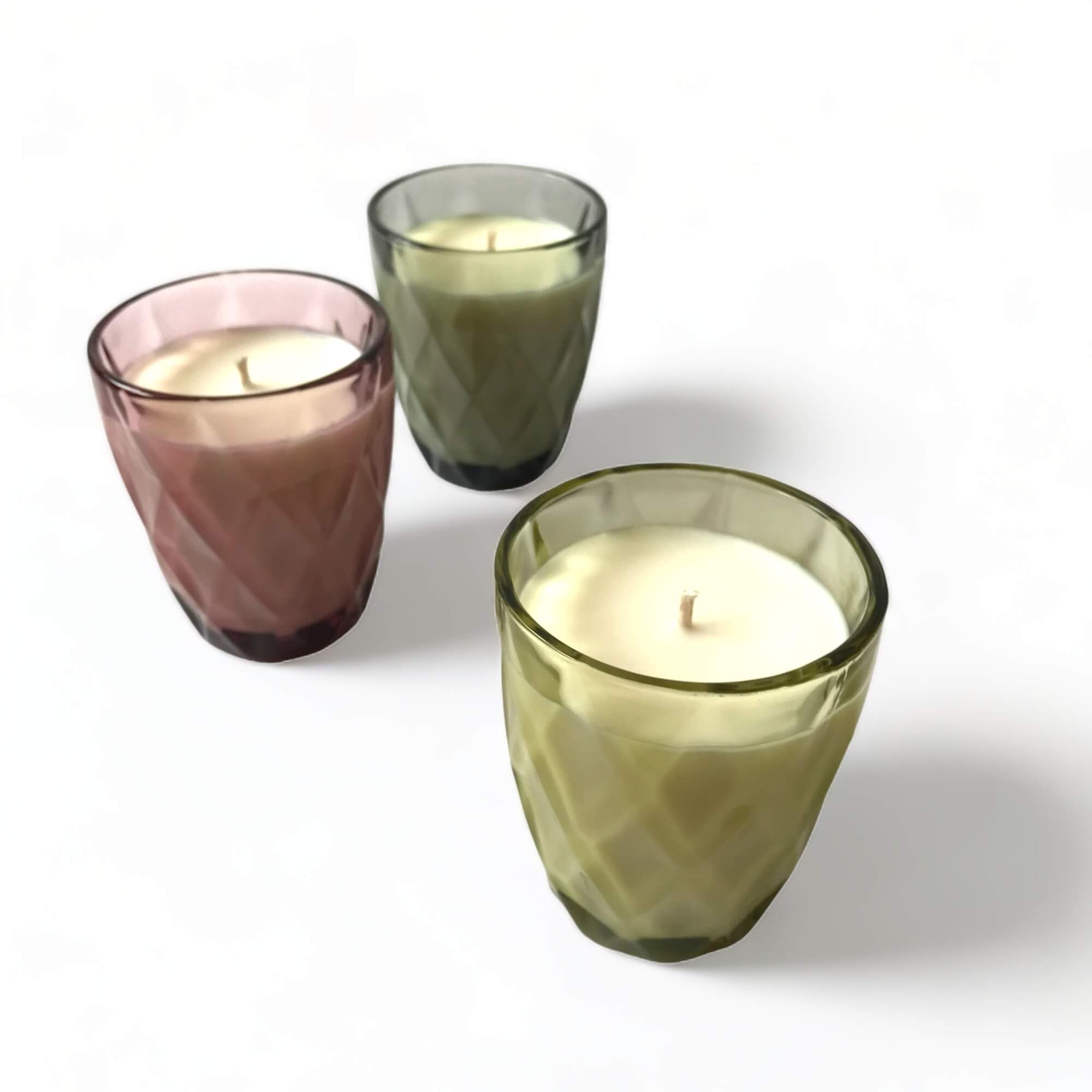 Jedinečný a luxusní vzhled skla svíček flammel. Jejich stěny jsou vyrobeny tak, že připomínají nádherné krystaly, což svíčkám dodává na eleganci. Četné refrakce a ražba krásně odráží světlo. Svíčky se skvěle vyjímají v tradičním i moderním interiéru.