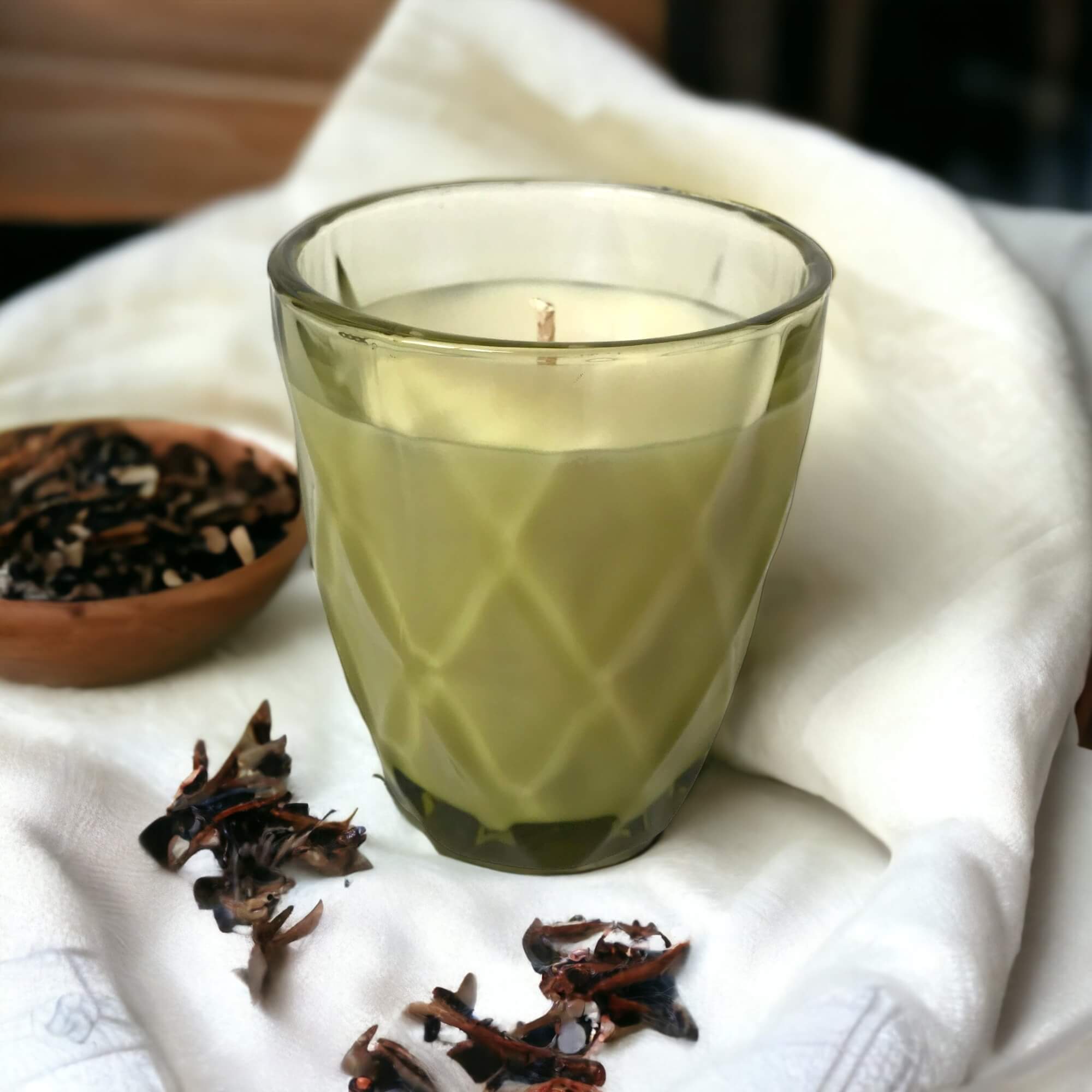 Ručně a s láskou vyrobená svíčka z nejkvalitnějšího vosku vyrobeného ze sóji vypěstované v USA. Svíčka je veganská, neobsahuje žádné živočišné produkty a toxické materiály. Při hoření nevylučuje žádné škodlivé látky. Sójový vosk hoří až o 50% déle než klasický ropný parafín.