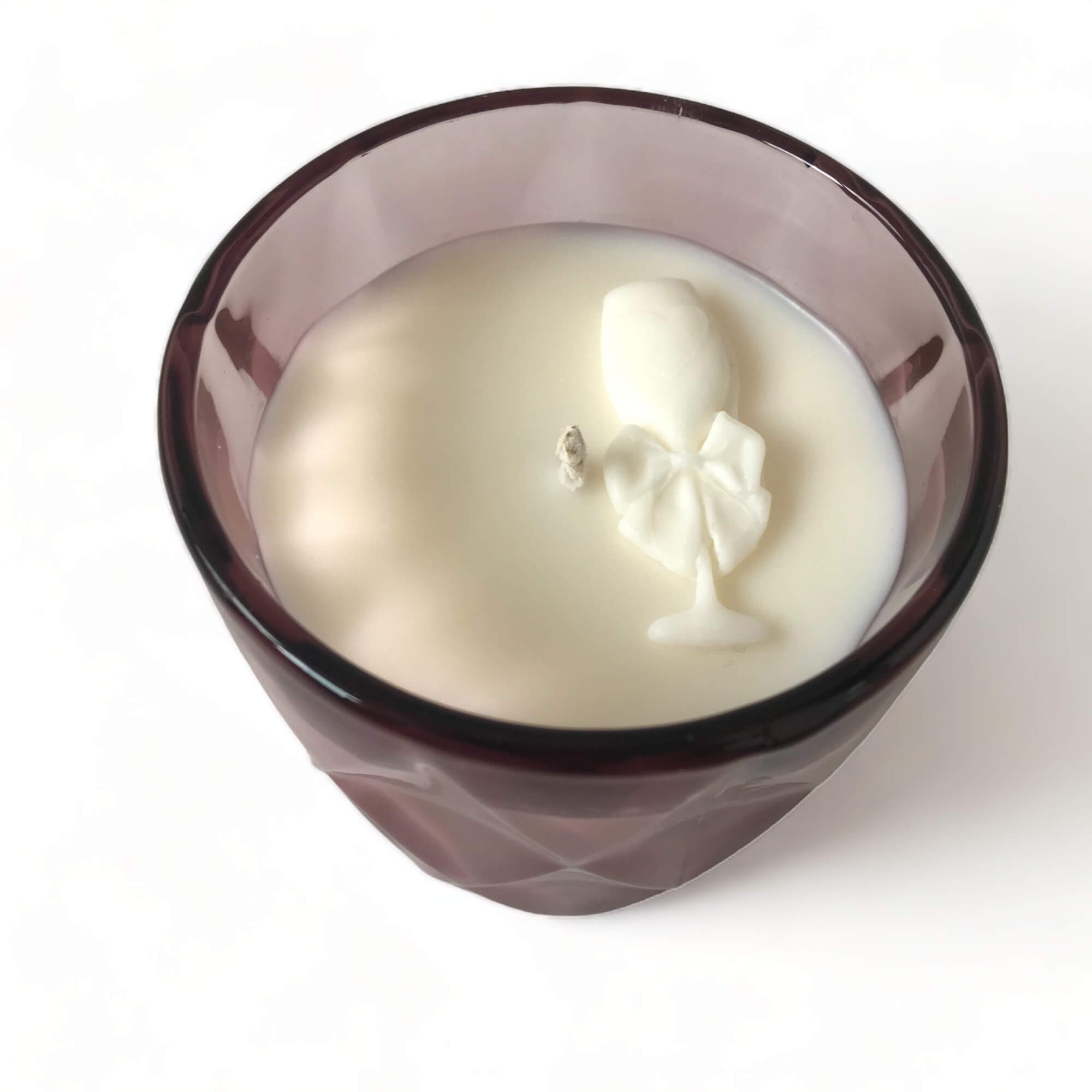 Sójová svíčka flammel s osvěžující lehce navinulou ovocnou vůní právě otevřené láhve Prosecca.