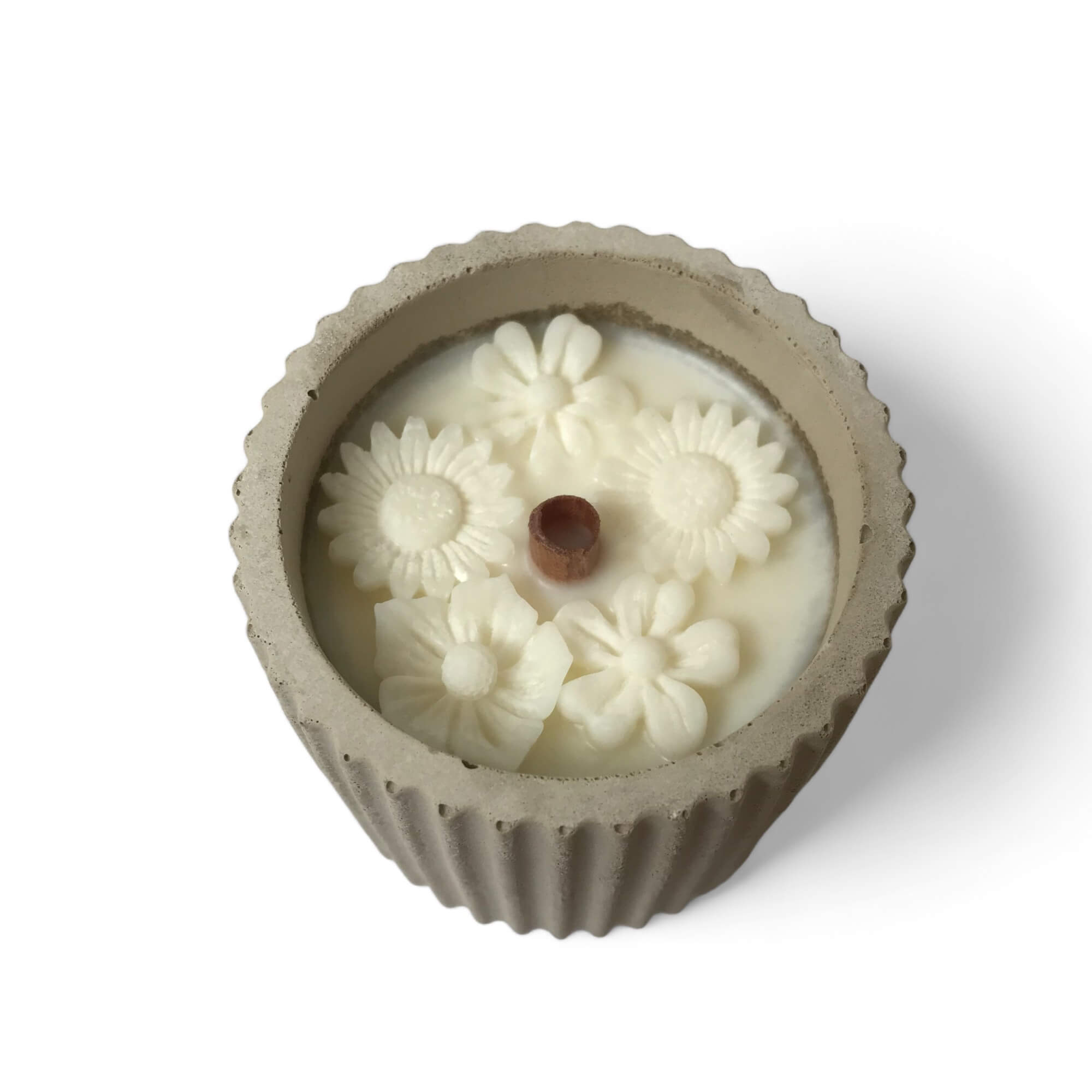 Sladká květinová vůně svíčky Květnatá louka v dokonale nedokonalém betonovém obalu. Vůně je inspirována oblíbeným dámským parfémem Viktor & Rolf Flowerbomb. Betonové víčko je součástí. Dřevěný knot po zapálení navozuje svým jemným praskavým zvukem pocit pohody a relaxu jako u hořícího krbu.
